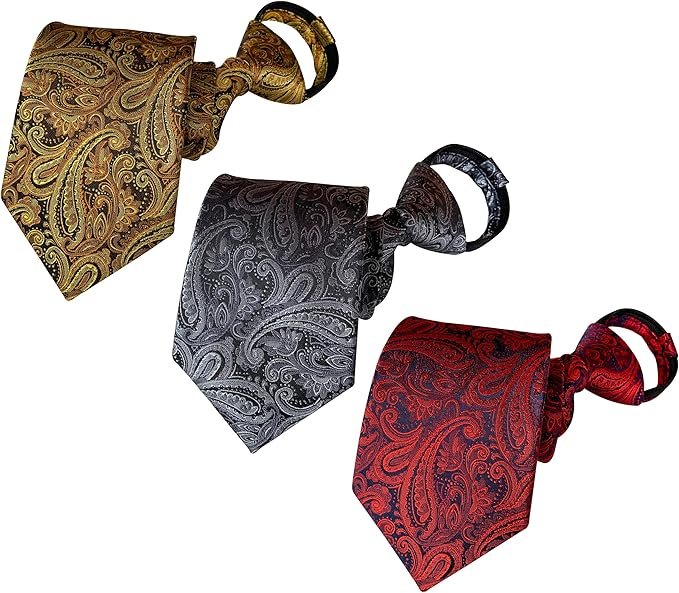 FASHION-TITONI-LLC Men’s Pre-Tied Silk Zipper Tie Paisley Patterns Mix3 Paisley