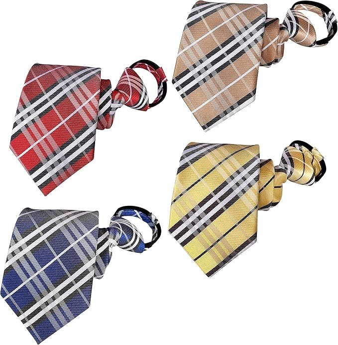 FASHION-TITONI-LLC Men’s Pre-Tied Silk Zipper Tie Paisley Patterns Mix4 Plaid