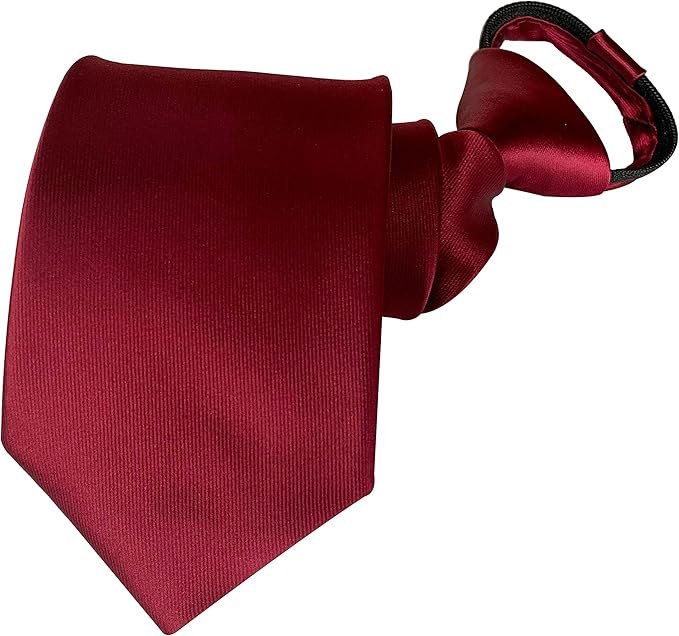 FASHION-TITONI-LLC Men’s Pre-Tied Silk Zipper Tie Paisley Patterns Solid Color- Burgundy